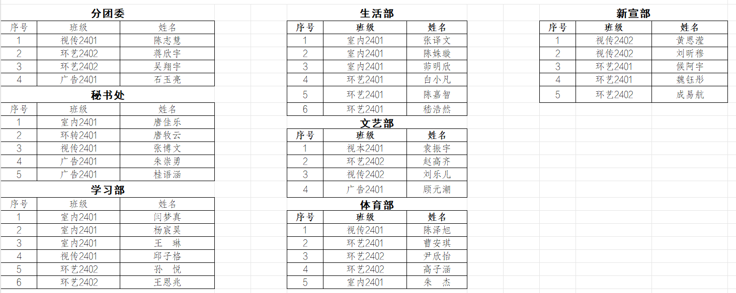 | 传媒与艺术设计学院2024级分团委学生会新成员名单公示 | |||