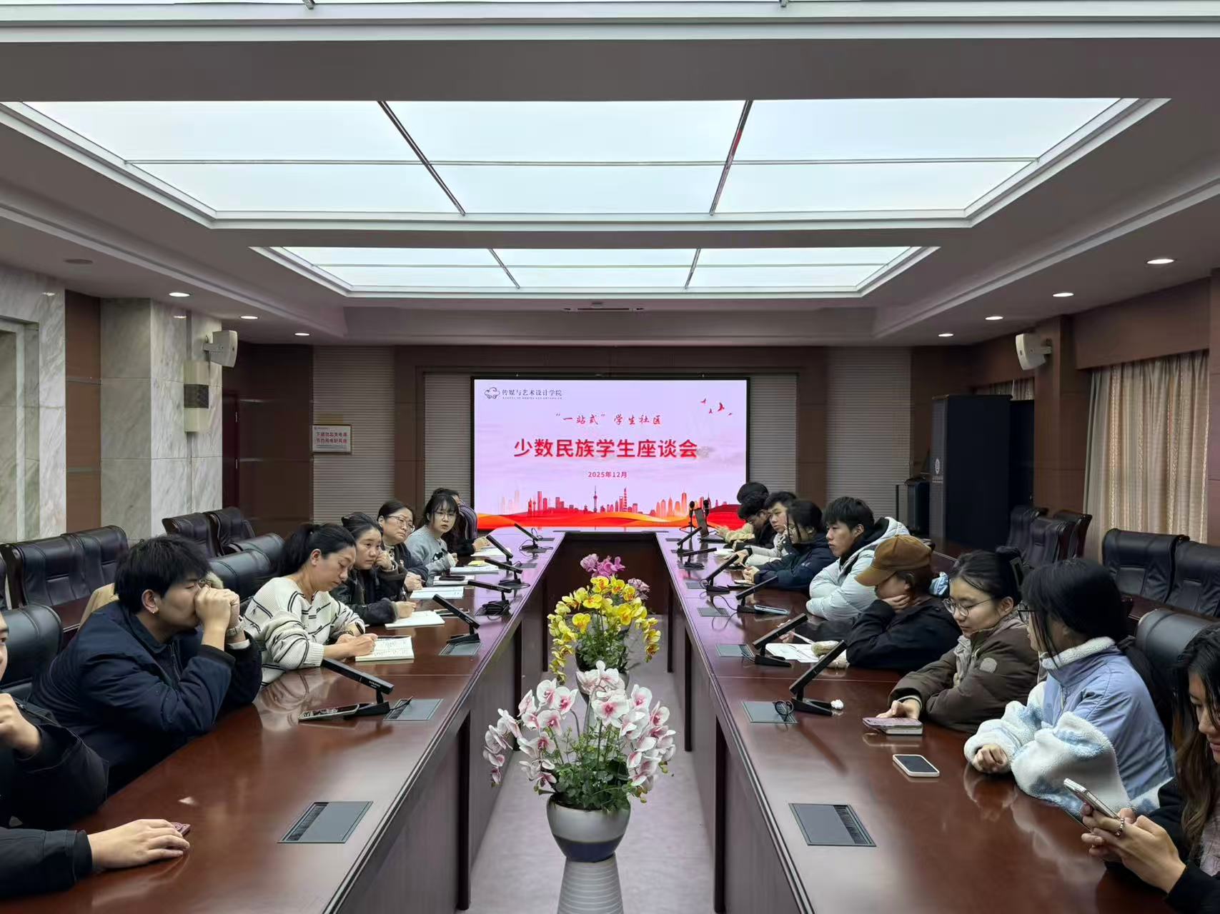 为持续畅通师生沟通渠道,倾听学生心声、解决学习生活实际诉求,优化学院服务与育人质量,传媒与艺术设计学院在行政楼308会议室分别召开2025年“一站式”学生社区建设以及少数民族学生座谈会。学院党总支书记夏心怡、副院长贾佳、党总支副书记李宁宁以及各年级辅导员与在校生代表齐聚,共解成长困惑、共商发展良策。